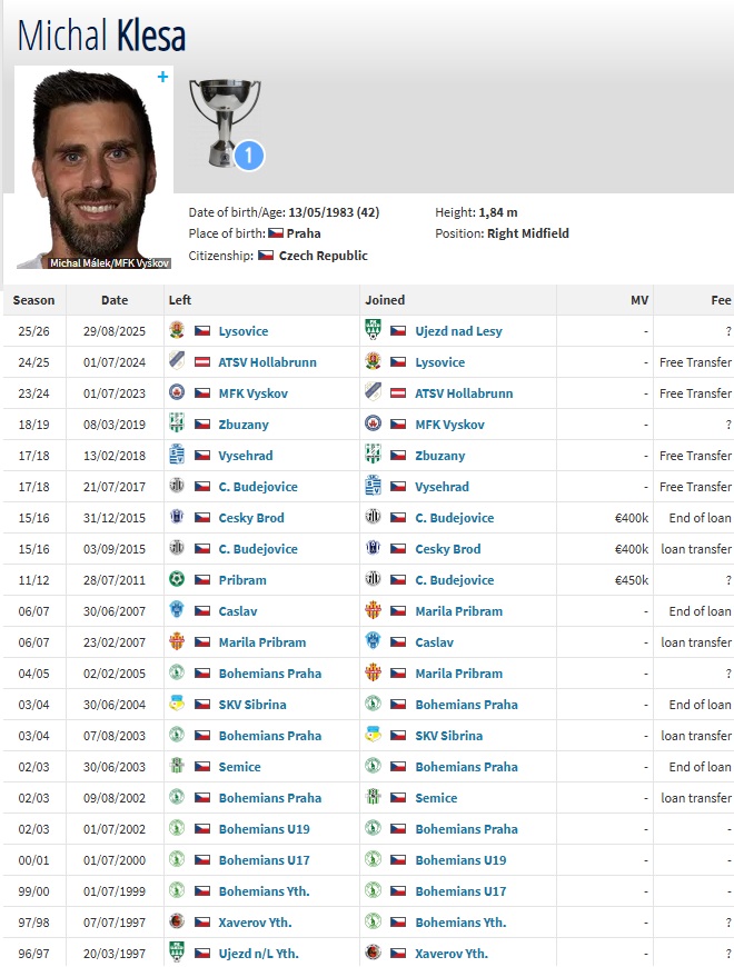 V jeho CV najdeme 190 zápasů v první lize, kde vstřelil 19 gólů.